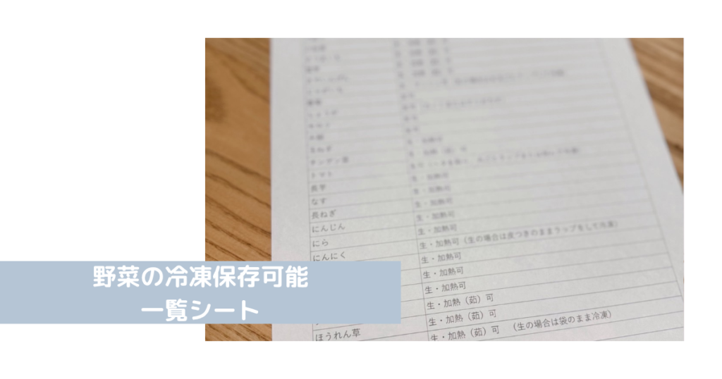 野菜の冷凍保存可能一覧シート