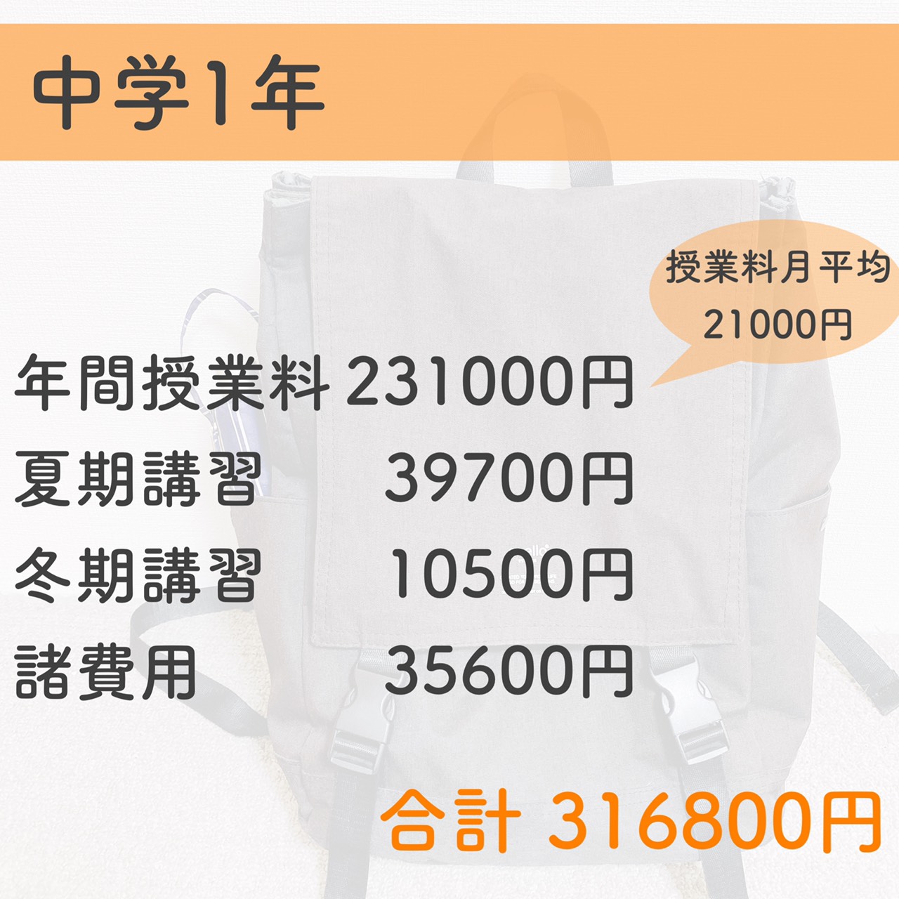 中1はまだ教科が少ないので授業料も安めになっています。