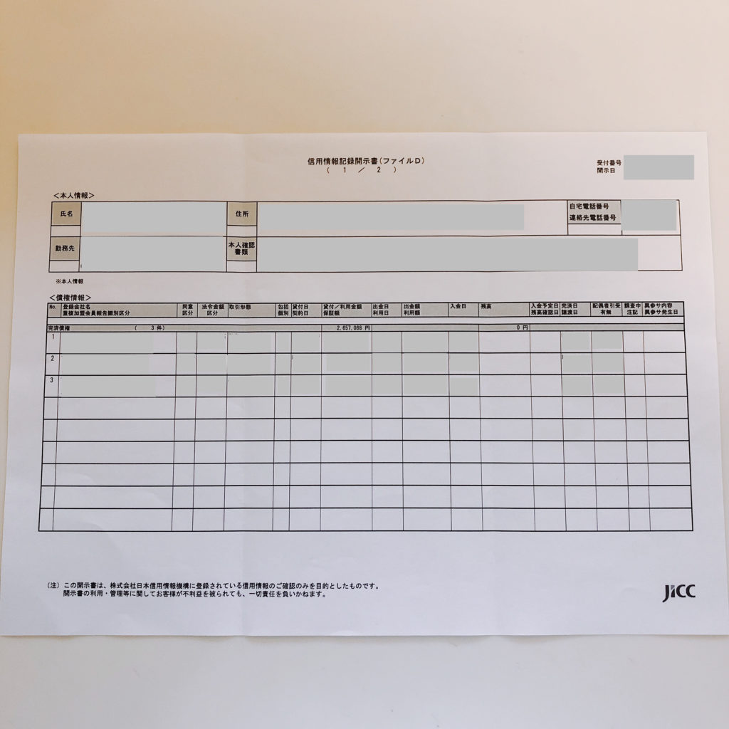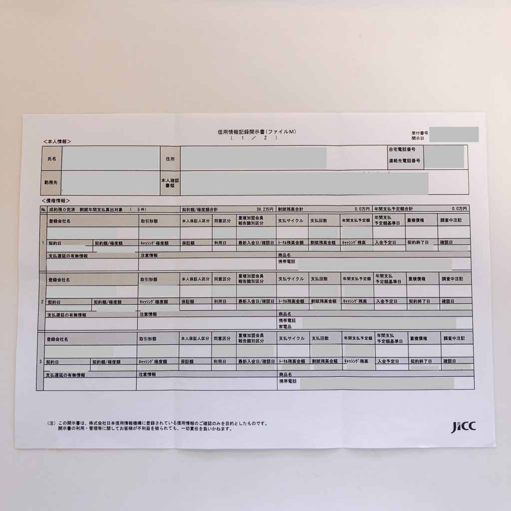 CICはパソコン、スマートフォンで情報開示が出来るのですぐ見れるのですが支払い方法がクレジットカードのみだったので夫はクレジットカードを持っていないので断念。。。今回は郵送で申し込みました。