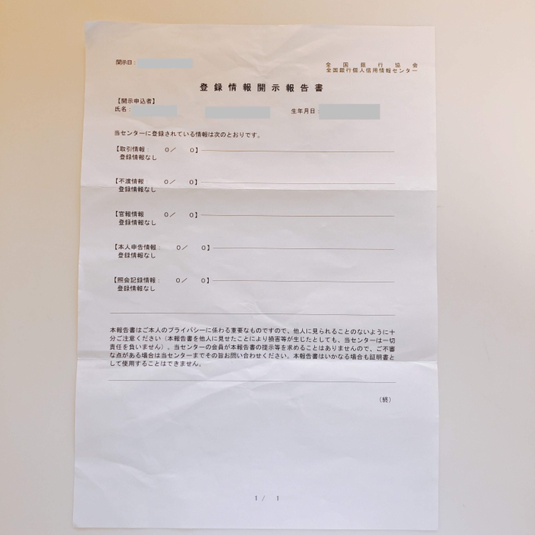 クレジットカードやローンなどの契約内容や支払い状況等の信用情報を確認出来る制度です。簡単に言うと自分自身のお金の履歴書です!