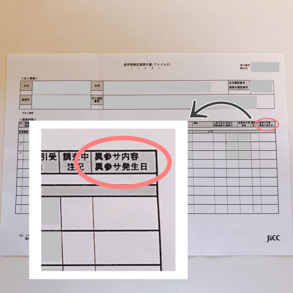 用紙の上の方に記載されている保有期間の間は情報が消えません。異動などがついている場合その日が過ぎるまではクレジットカードを作ったり、ローンを組む事が出来ません。