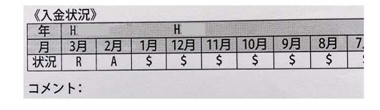 CICは過去24か月の入金状況が分かります。